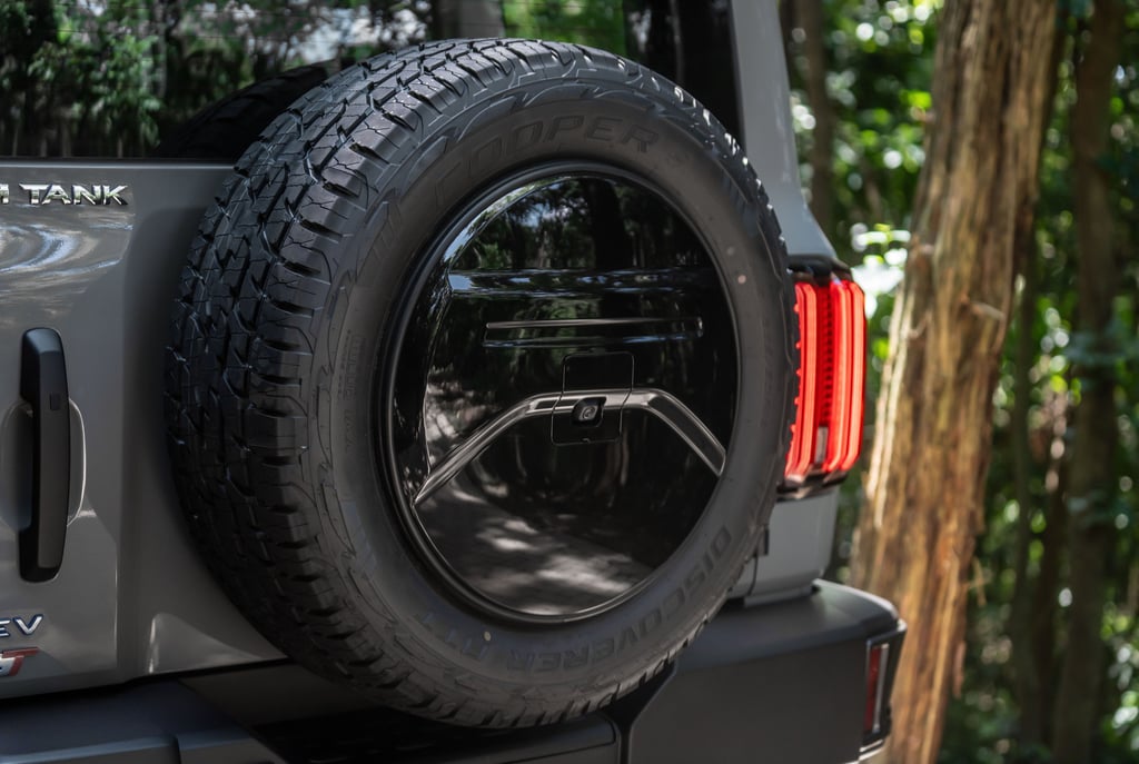 Na parte externa, o Tank 300 pode ser encarado como um veículo urbano sofisticado e ao mesmo tempo um off-road robusto e com muita elegância. O modelo possui para-choques, molduras dos paralamas e maçanetas externas na cor preta, estribos laterais, rack de teto, estepe traseiro fixado em suporte suspenso, janelas com função one-touch e barra de proteção contra impactos em aço.