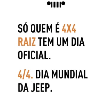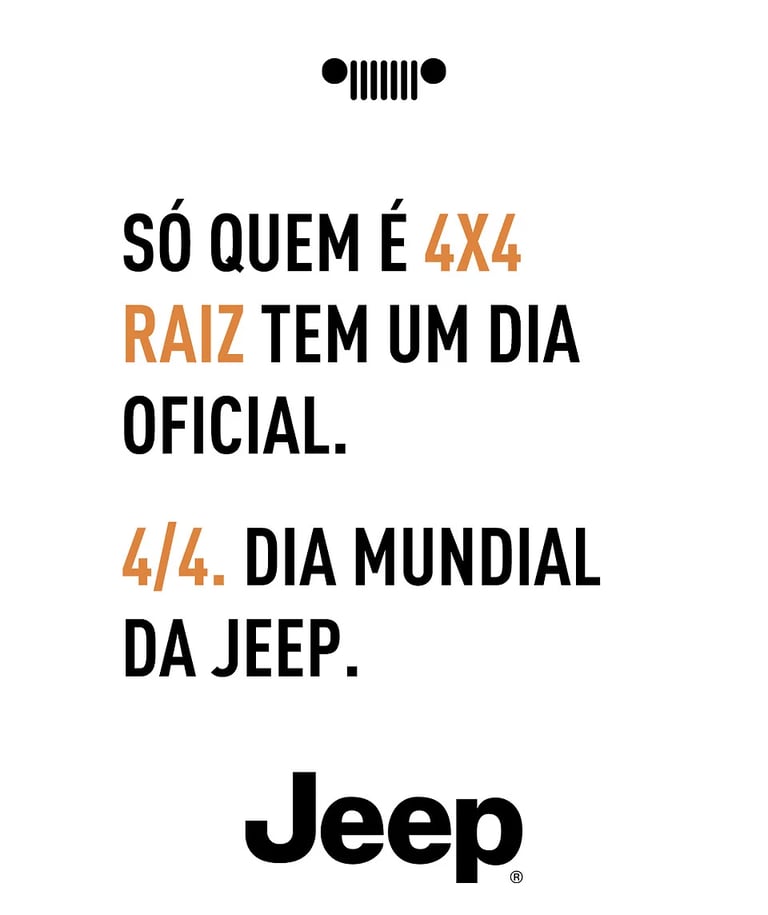 - Dia 4/4 é conhecido mundialmente como o "Jeep Day". No dia 4 de abril, o 4/4, a Jeep celebra seu legado icônico e a capacidade de levar as pessoas a lugares incríveis, onde somente um Jeep de verdade pode chegar. É o mundialmente reconhecido “Jeep Day”!