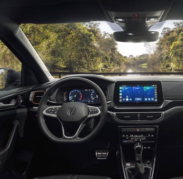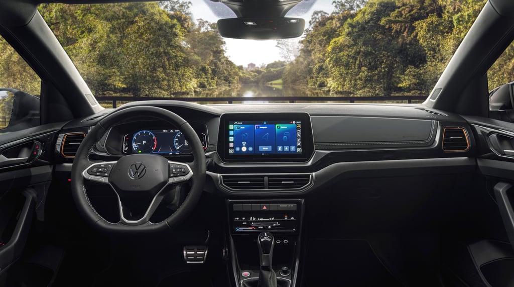 No interior, os bancos têm novo revestimento com costura laranja, além do nome Extreme aplicado nos encostos. O painel de instrumentos digital de 10 polegadas agora acompanha a nova central multimídia VW Play Connect, abrindo as portas para a conectividade no Novo T‑Cross.